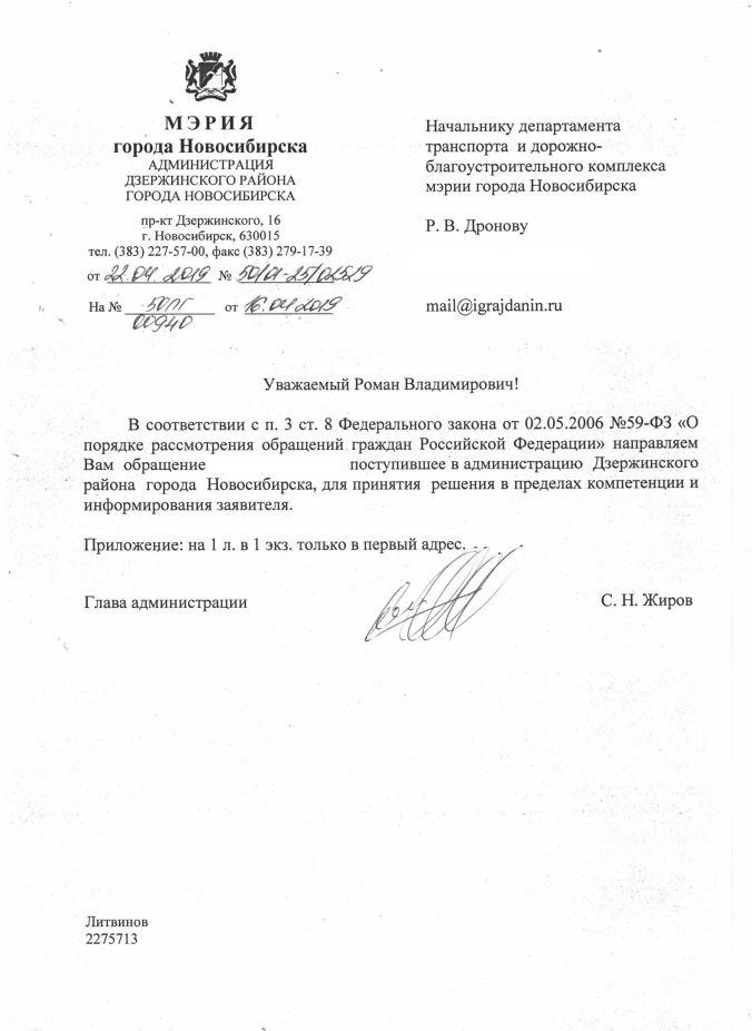 айГражданинОтправлено 15.04.2019: "администрация Дзержинского района г.Новосибирск"