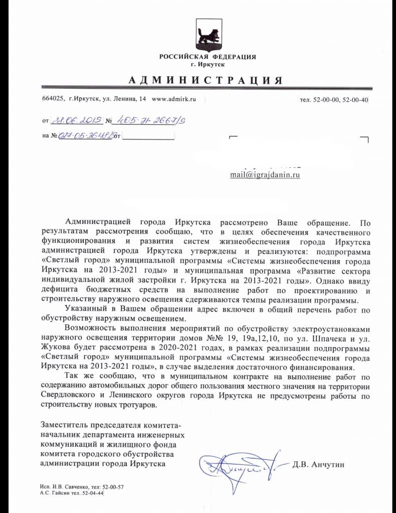 айГражданинОтправлено 06.06.2019: "Администрация города Иркутска"