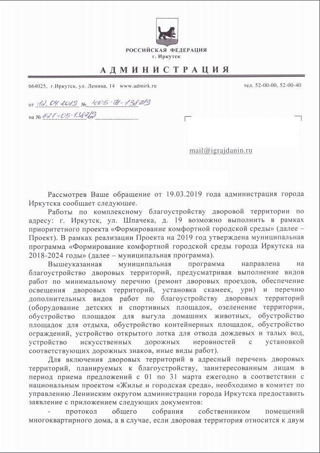 айГражданинОтправлено 23.04.2019: "Администрация города Иркутска"