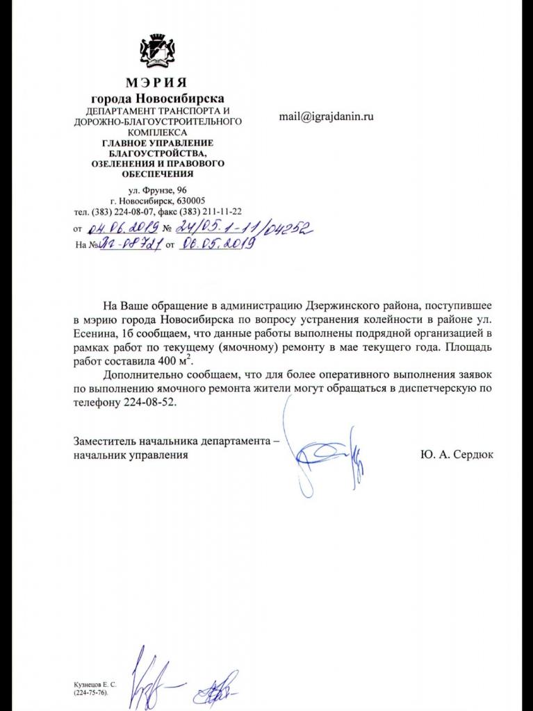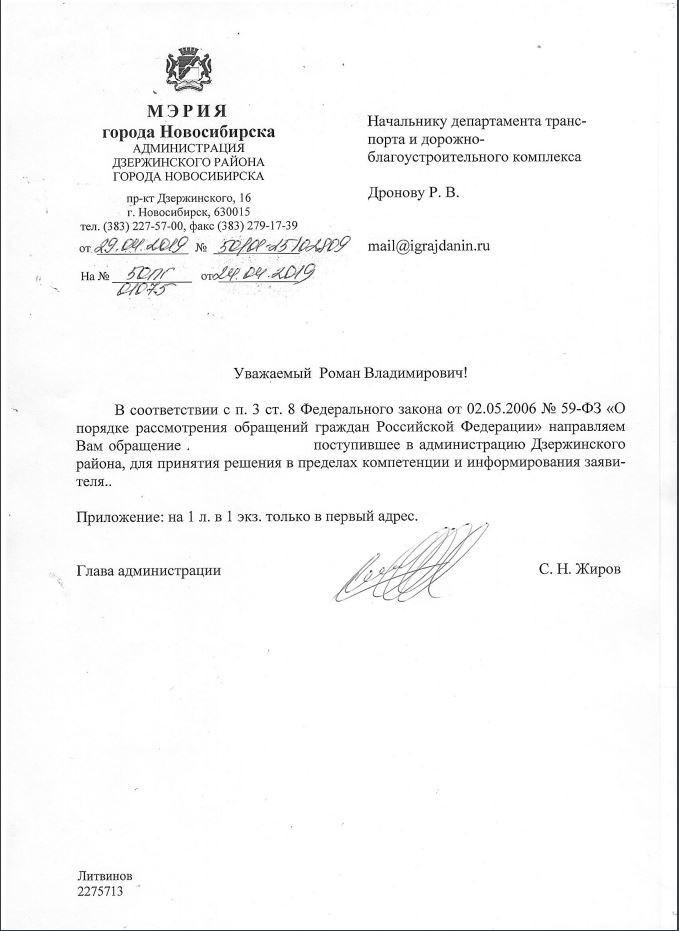 айГражданинОтправлено 23.04.2019: "администрация Дзержинского района г.Новосибирск"