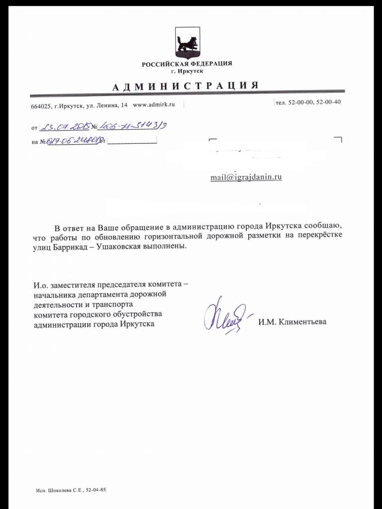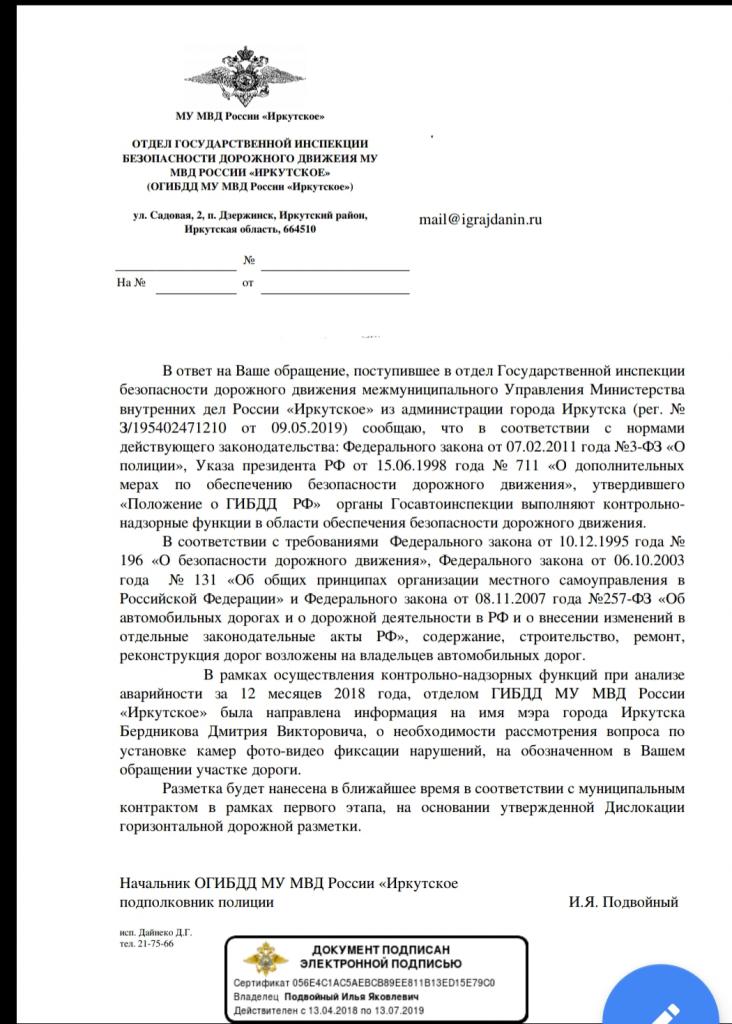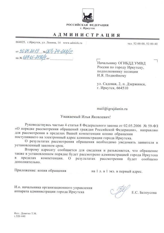 айГражданинОтправлено 23.04.2019: "Администрация города Иркутска"