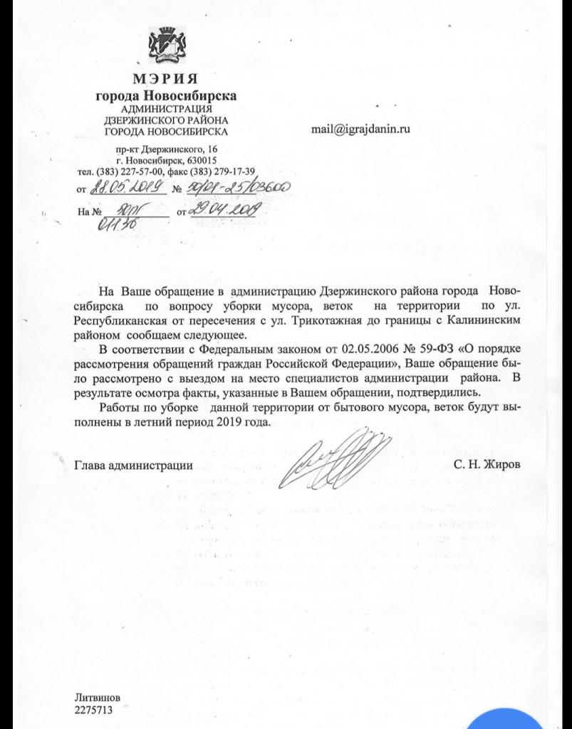 айГражданинОтправлено 26.04.2019: "администрация Дзержинского района г.Новосибирск"