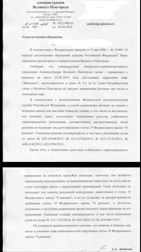 айГражданинОтправлено 29.04.2019: "Администрация г.Великий Новгород"