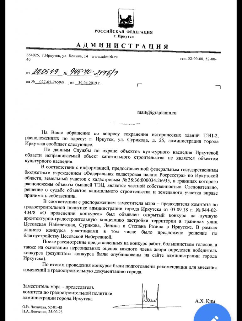 айГражданинОтправлено 29.04.2019: "Администрация города Иркутска"
