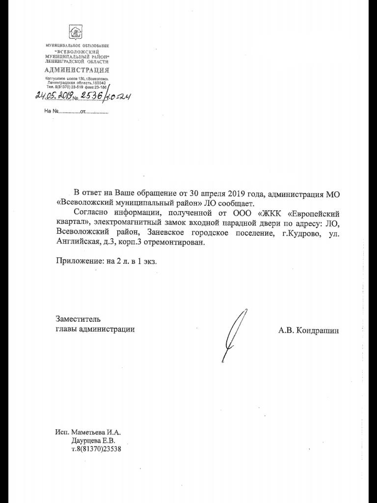 айГражданинОтправлено 30.04.2019: "Администрация МО "Всеволожский муниципальный район" Ленинградской области "