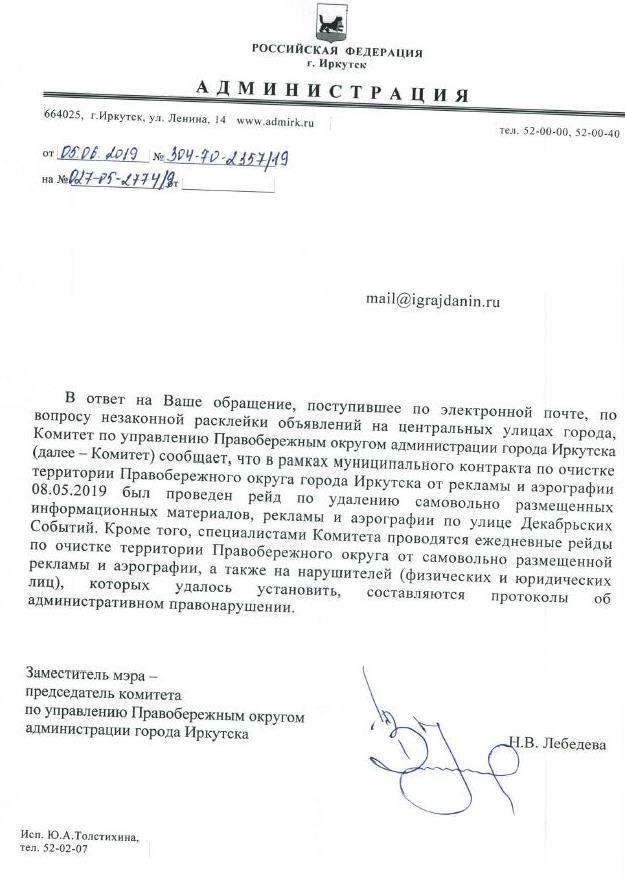 айГражданинОтправлено 06.05.2019: "Администрация города Иркутска"