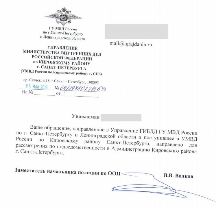 айГражданинОтправлено 06.05.2019: "УГИБДД по Санкт-Петербургу и Ленинградской области"