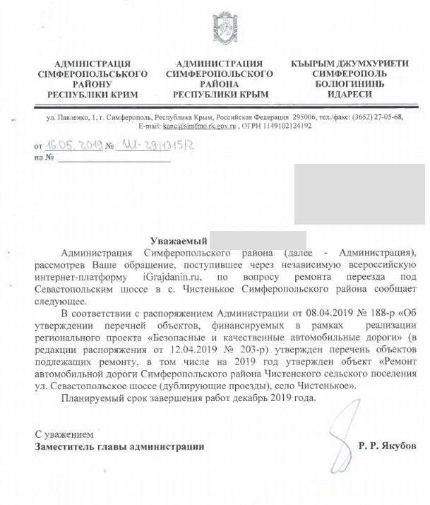 айГражданинОтправлено 06.05.2019: "Администрация Симферопольского района республики Крым"