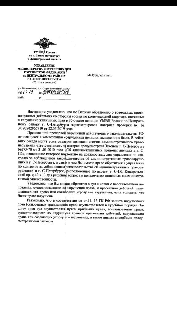 айГражданинОтправлено 14.05.2019: "ГУ МВД РОССИИ по г.Санкт-Петербургу и Ленинградской области"