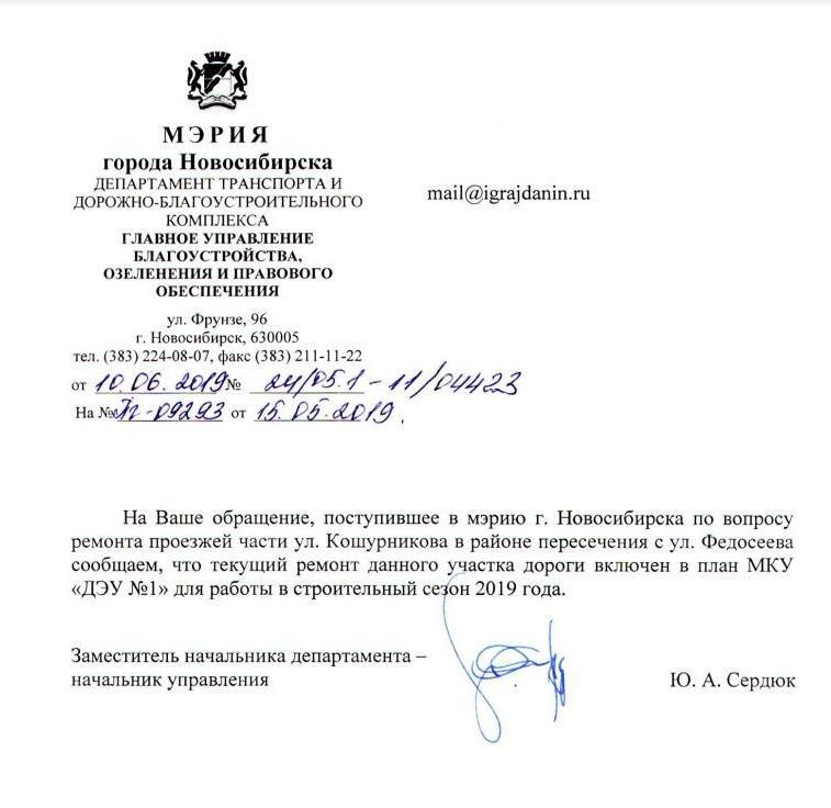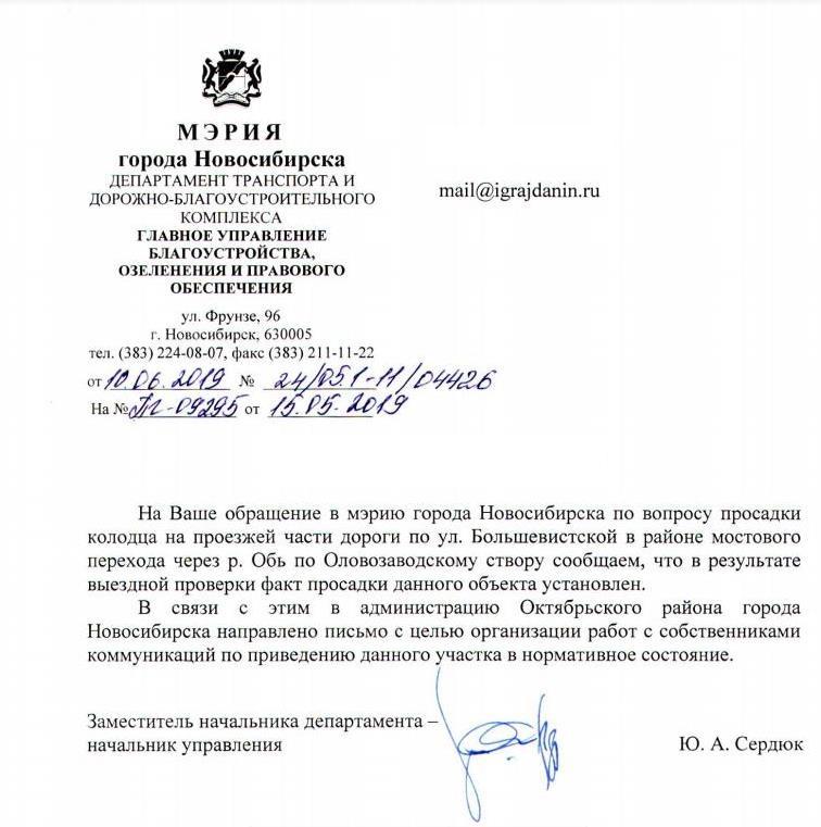айГражданинОтправлено 13.05.2019: "Мэрия города Новосибирск"