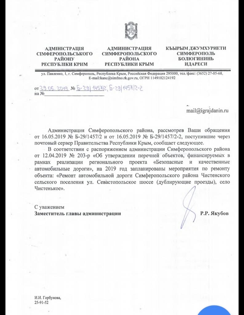 айГражданинОтправлено 13.05.2019: "Администрация Симферопольского района республики Крым"