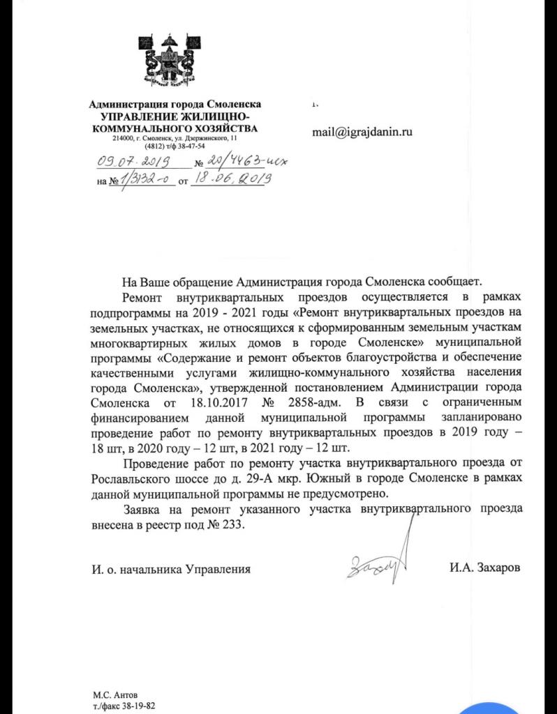 айГражданинОтправлено 18.06.2019: "Администрация города Смоленска"