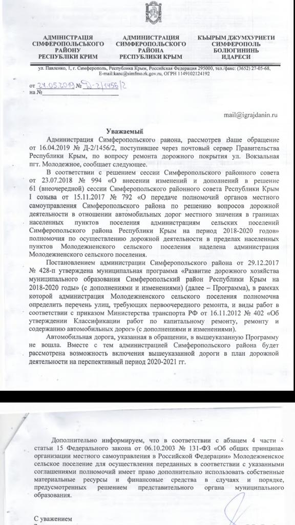 айГражданинОтправлено 13.05.2019: "Администрация Симферопольского района республики Крым"