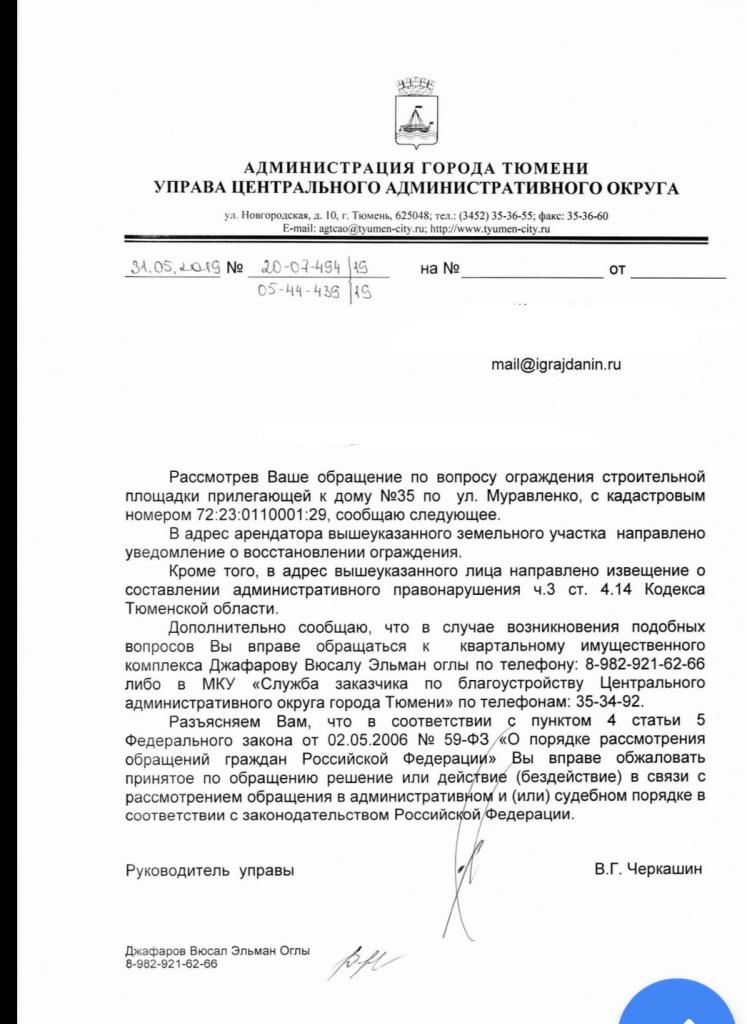 айГражданинОтправлено 13.05.2019: "Администрация города Тюмени"