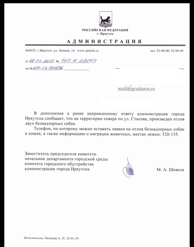айГражданинОтправлено 15.05.2019: "Администрация города Иркутска"