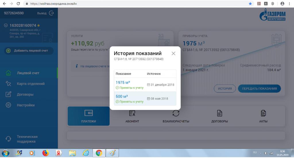 Елена Кузьмина21.05.2019 опять не верные показания в личном кабинете на сайте мойгаз.смородина.онлайн
