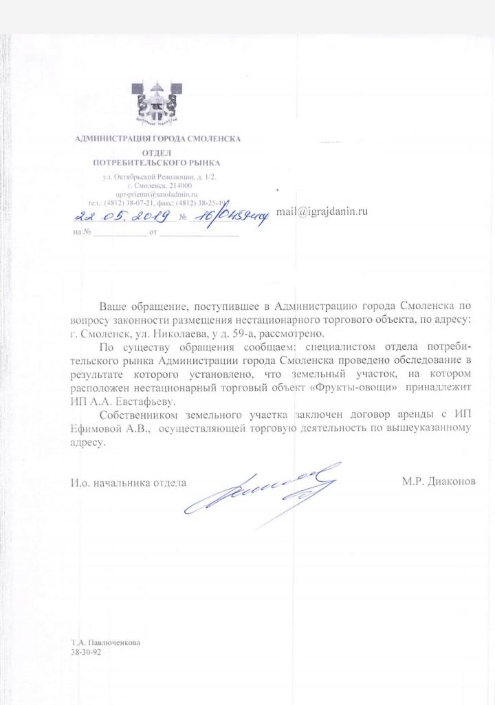 айГражданинОтправлено 15.05.2019: "Администрация города Смоленска"