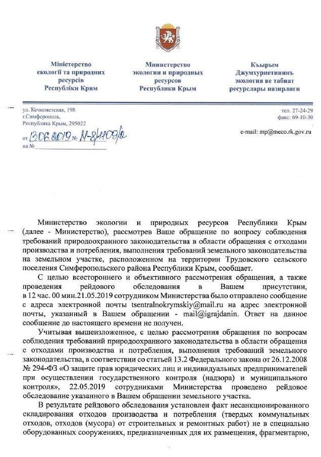 айГражданинОтправлено 15.05.2019: "Министерство экологии и природных ресурсов Республики Крым"
