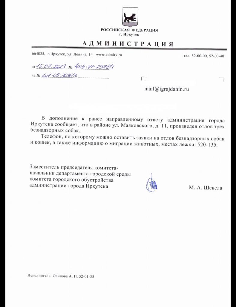 айГражданинОтправлено 15.05.2019: "Администрация города Иркутска"
