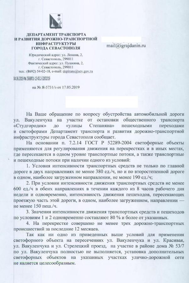 СтепанЯ написал просьбу о пешеходных переходах, светофоры были опциональны. Мне ответили, что светофоры по ГОСТ поставить не могут, а про пешеходные переходы ничего не ответили.