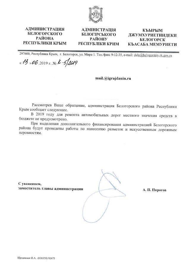 айГражданинОтправлено 20.05.2019: "Администрация Белогорского района Республики Крым"