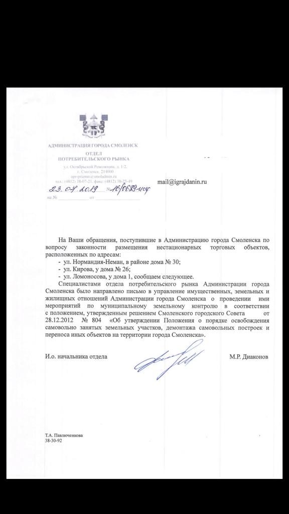 айГражданинОтправлено 29.04.2020: "Администрация города Смоленска"
