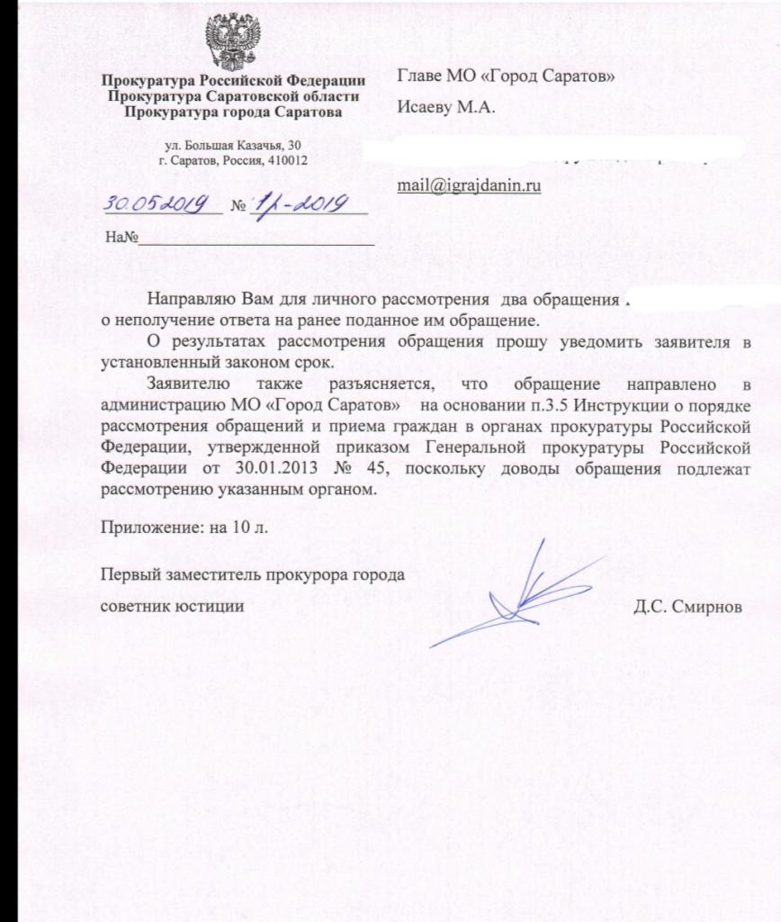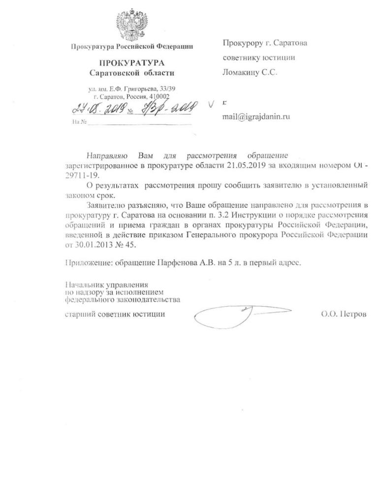 айГражданинОтправлено 20.05.2019: "Прокуратура Саратовской области"