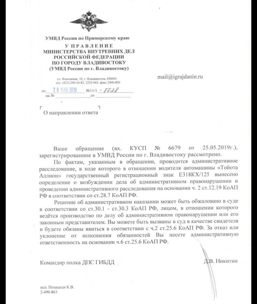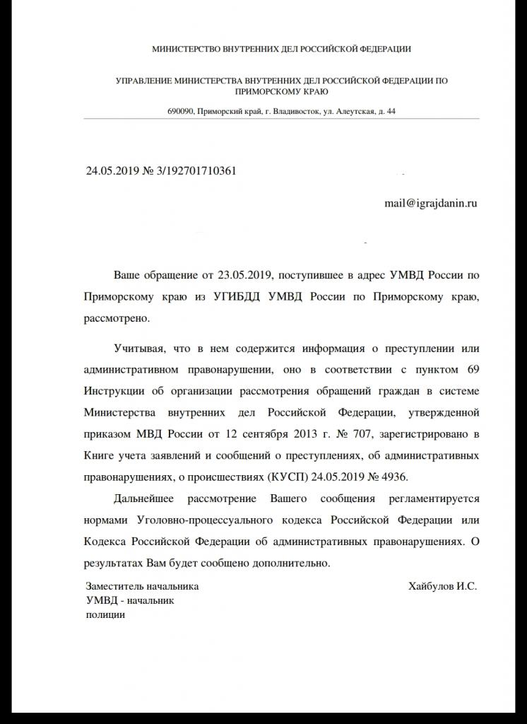 айГражданинОтправлено 23.05.2019: "УГИБДД России по Приморскому краю"