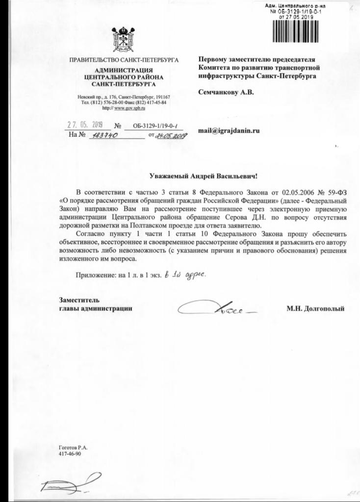 айГражданинОтправлено 24.05.2019: "Администрация Центрального района Санкт-Петербурга"