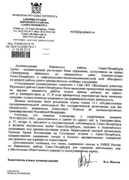 айГражданинОтправлено 24.05.2019: "Администрация Кировского района Санкт-Петербурга"