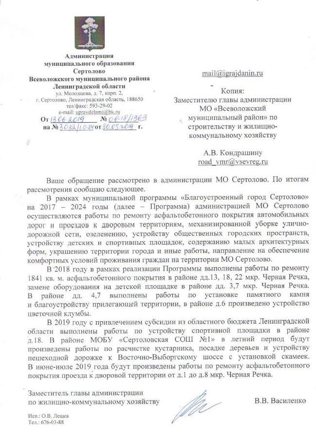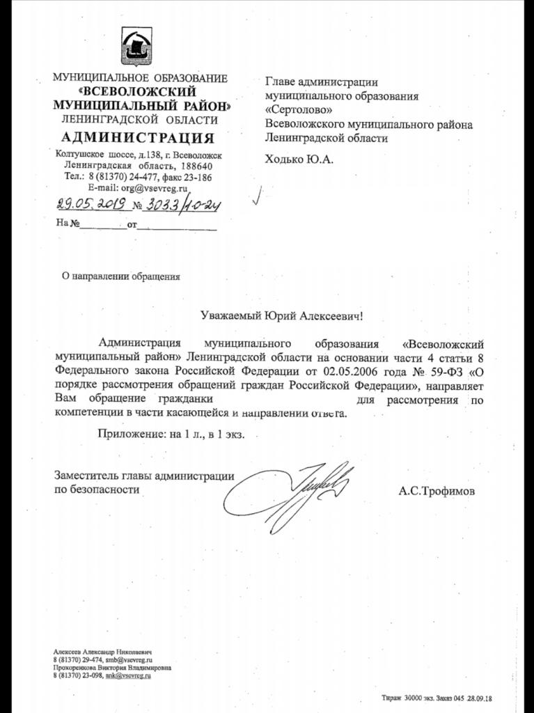 айГражданинОтправлено 26.05.2019: "Администрация МО "Всеволожский муниципальный район" Ленинградской области "