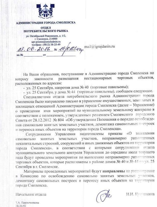 айГражданинОтправлено 26.05.2019: "Администрация города Смоленска"