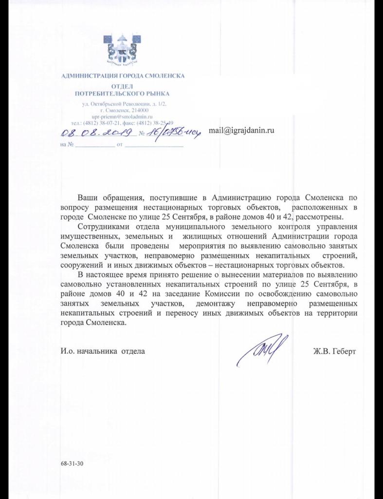айГражданинОтправлено 26.07.2019: "Администрация города Смоленска"