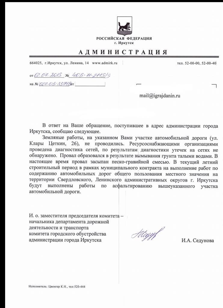 айГражданинОтправлено 04.06.2019: "Администрация города Иркутска"