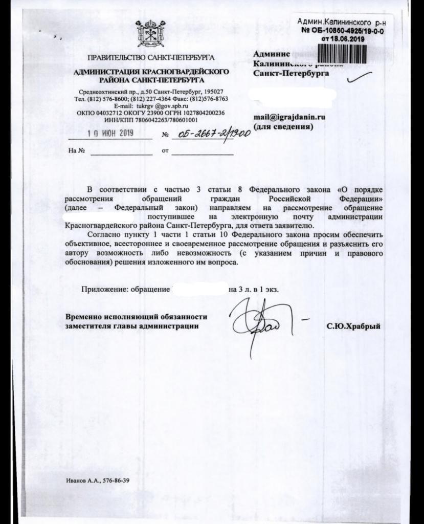 айГражданинОтправлено 02.06.2019: "Администрация Красногвардейского района города Санкт-Петербурга"