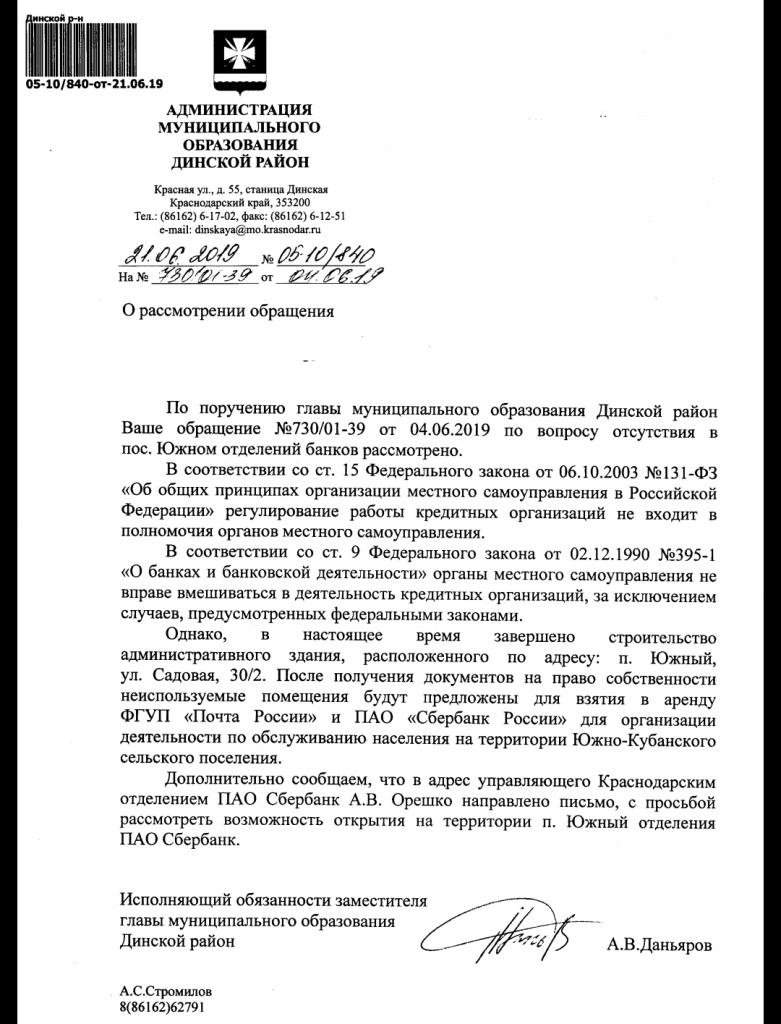 айГражданинОтправлено 02.06.2019: "Администрация муниципального образования "Динский район""