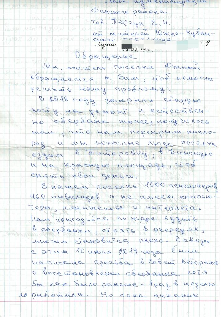 Илья ЧупинЖители посёлка просят до открытия полноценного отделения Сбербанка восстановить сберкассу, которая была закрыта в 2018 году. (см. Вложение)