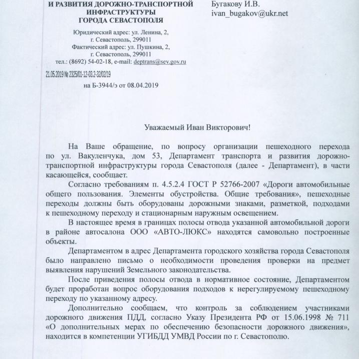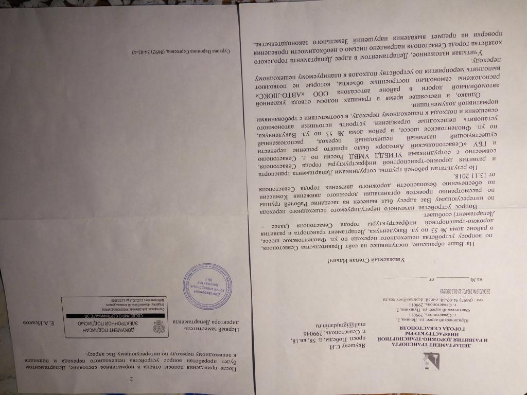 Иван БугаковСообщал об этой проблеме многократно и в разные места, решения данной проблемы до сих пор отсутствует. Прикладываю для информации два ответа от правительства по этому поводу. По ним могу сделать вывод что никто ничего делать не собирается. Или как можно было сообщать о том, что будет выполнен переход, но потом вдруг обнаружить самовольно построенные объекты. Но если Вы в письме сообщаете, что объекты самовольно построенные, то зачем проводить проверку на предмет выявления нарушений, если фраза предполагает, что нарушение есть.
