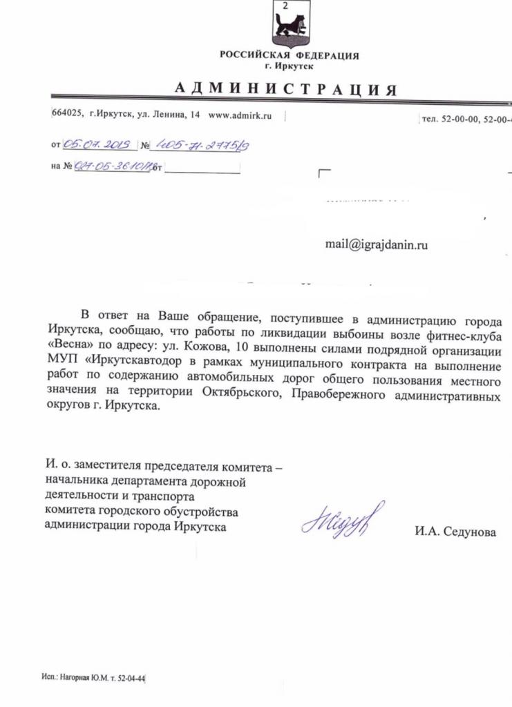 айГражданинОтправлено 05.06.2019: "Администрация города Иркутска"
