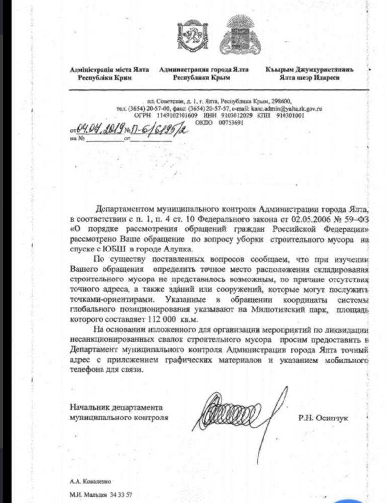 айГражданинОтправлено 07.06.2019: "Администрация города Ялты республики Крым"