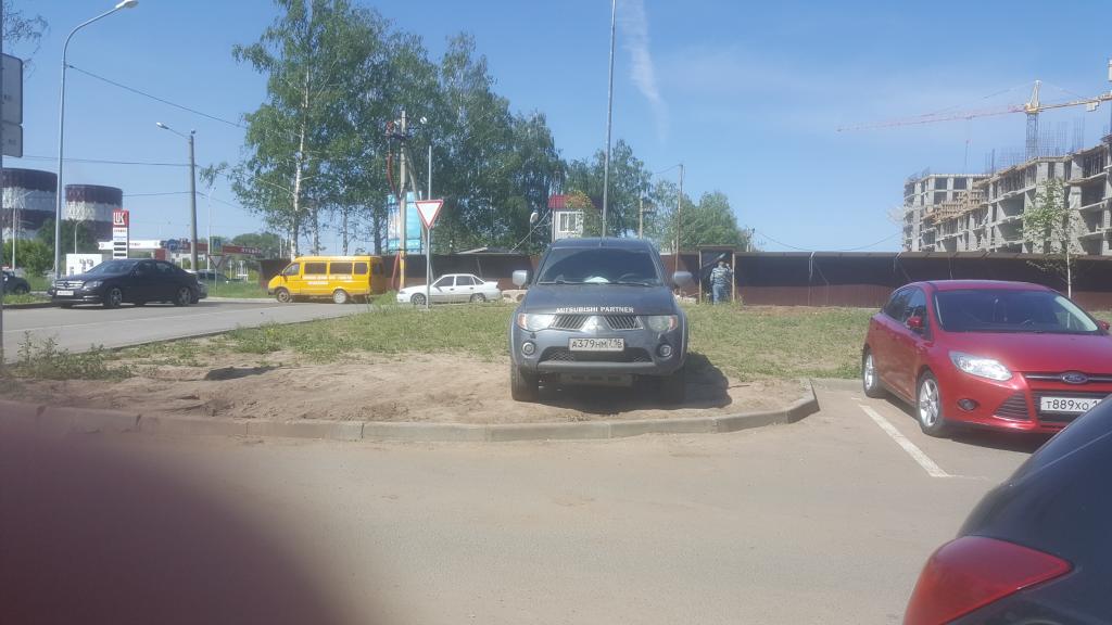 На зеленой зоне паркуются автомобили. Превратили уже в утрамбованную землю