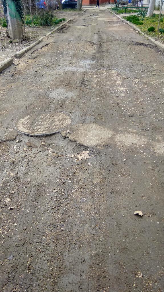За 4+ года внутридворовая дорога исчезла, осталось только 40 % разбитого дорожного покрытия, все остальное земля, огромные ямы и почти провалившейся люк, на детской площадке нет ни писка ни самой площадки. На машине проехать или ходить с коляской по ней невозможно.