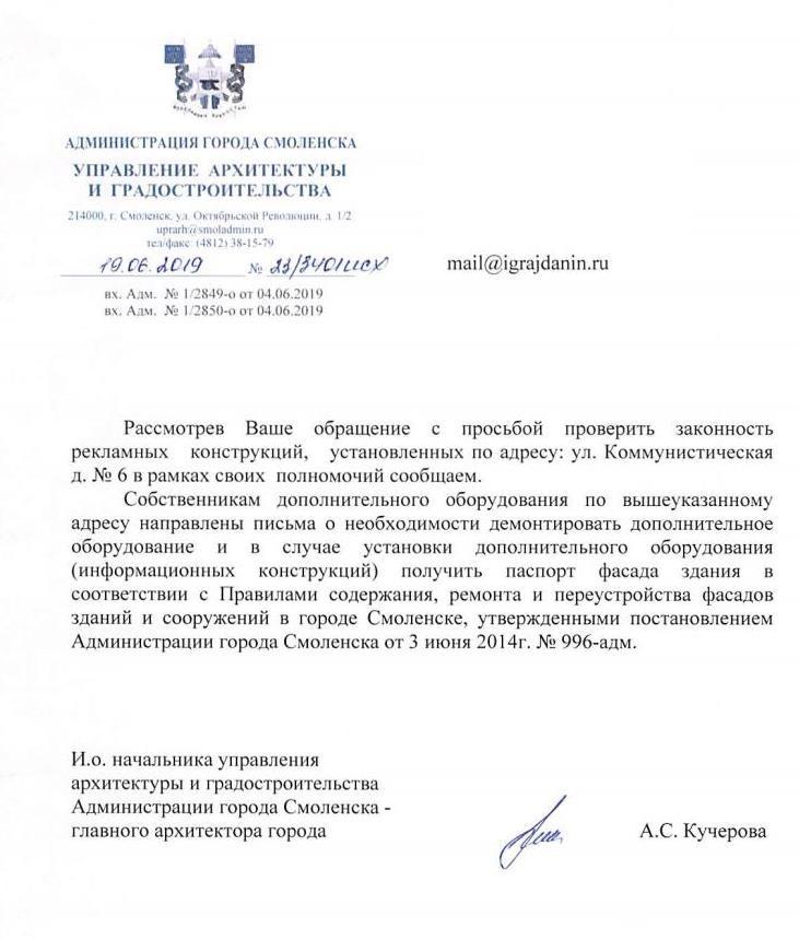 айГражданинОтправлено 14.06.2019: "Администрация города Смоленска"