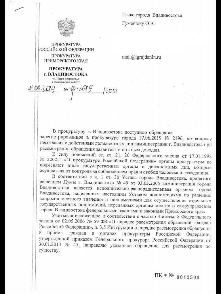 айГражданинОтправлено 14.06.2019: "Прокуратура Приморского края"