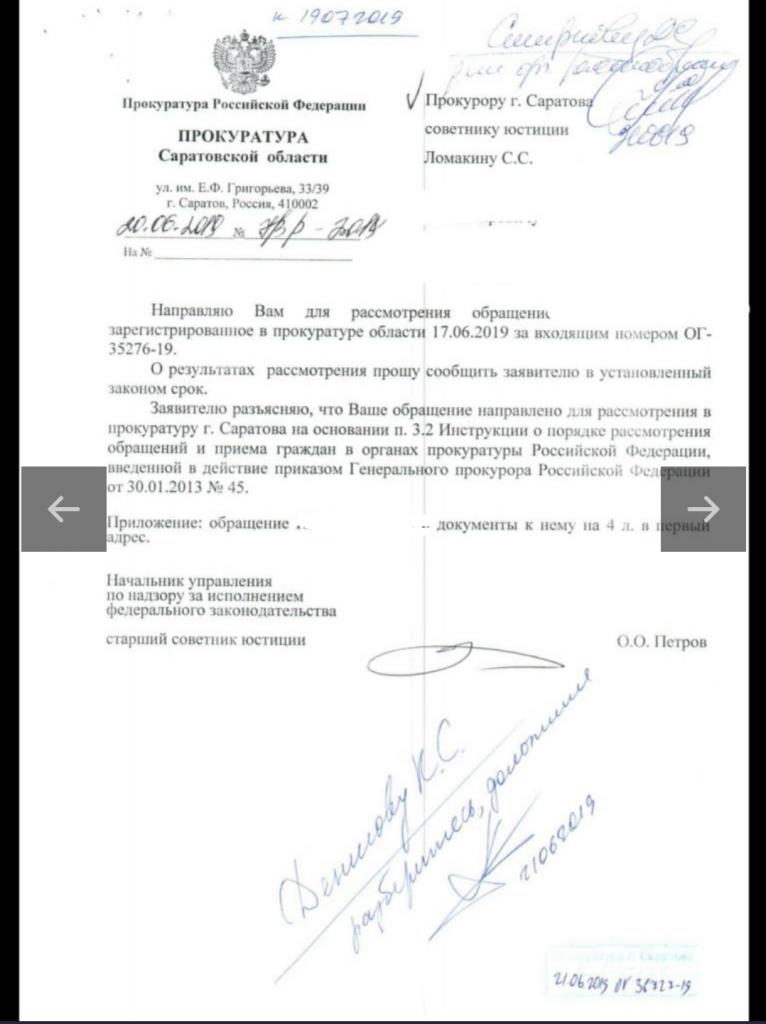 айГражданинОтправлено 02.07.2019: "Прокуратура Саратовской области"