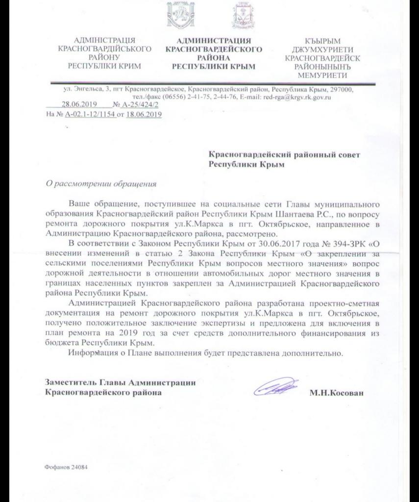 айГражданинОтправлено 14.06.2019: "Администрация Красногвардейского района республики Крым"