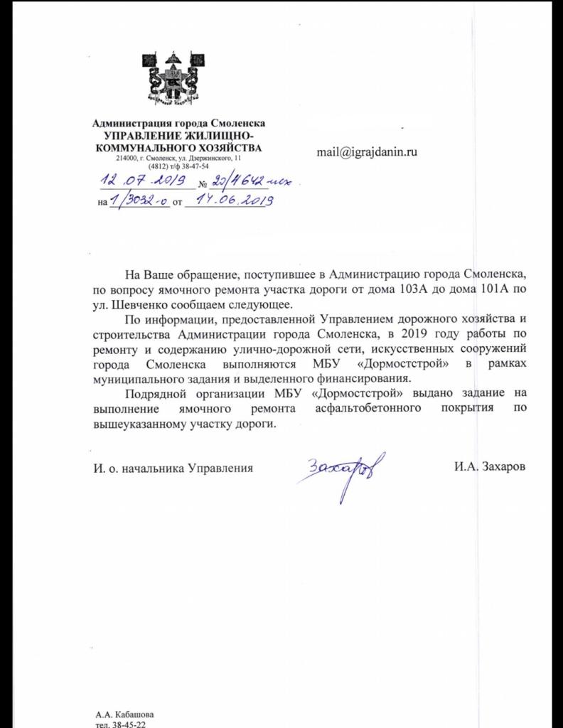 айГражданинОтправлено 14.06.2019: "Администрация города Смоленска"