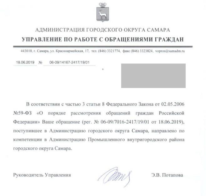 айГражданинОтправлено 18.06.2019: "Администрация городского округа Самара"