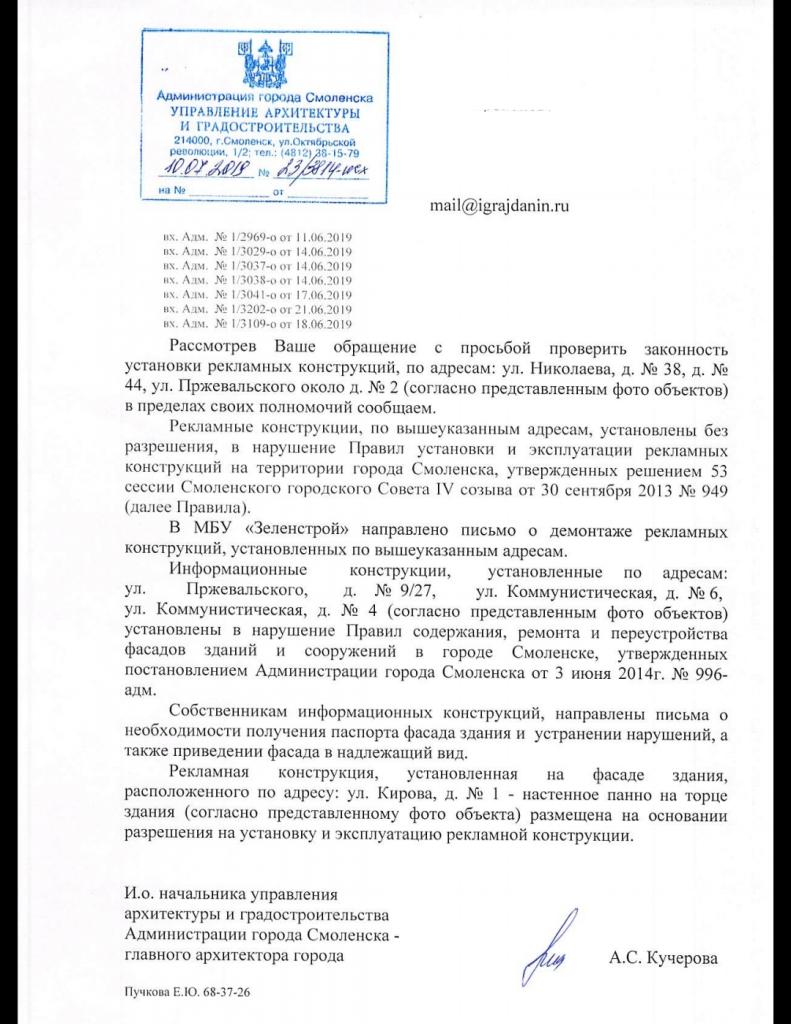 айГражданинОтправлено 18.06.2019: "Администрация города Смоленска"