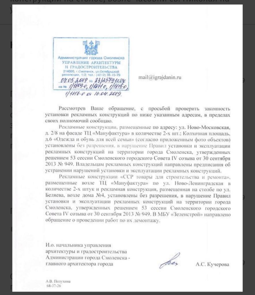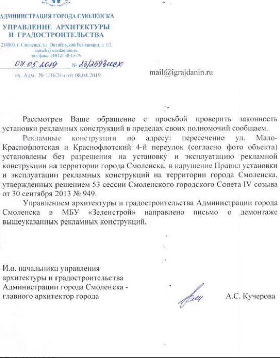 айГражданинОтправлено 18.06.2019: "Администрация города Смоленска"